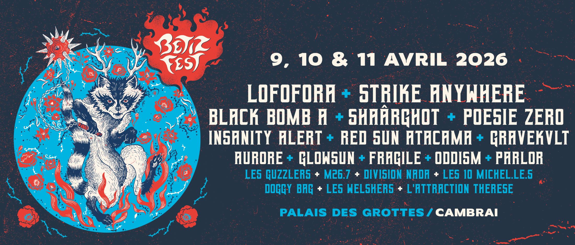 Après cette ouverture festive, l’affiche accordera, le vendredi et le samedi, une part importante au punk et au hardcore, sous de nombreuses déclinaisons. Les Américains STRIKE ANYWHERE, pour une date unique en France, clôtureront le 10 avril. Avant eux, se seront produits les incontournables BLACK BOMB A, les joyeux lurons thrashers d’INANITY ALERT, AURORE (punk hardcore, metalcore), FRAGILE (hardcore moderne) et ODDISM (mathcore).