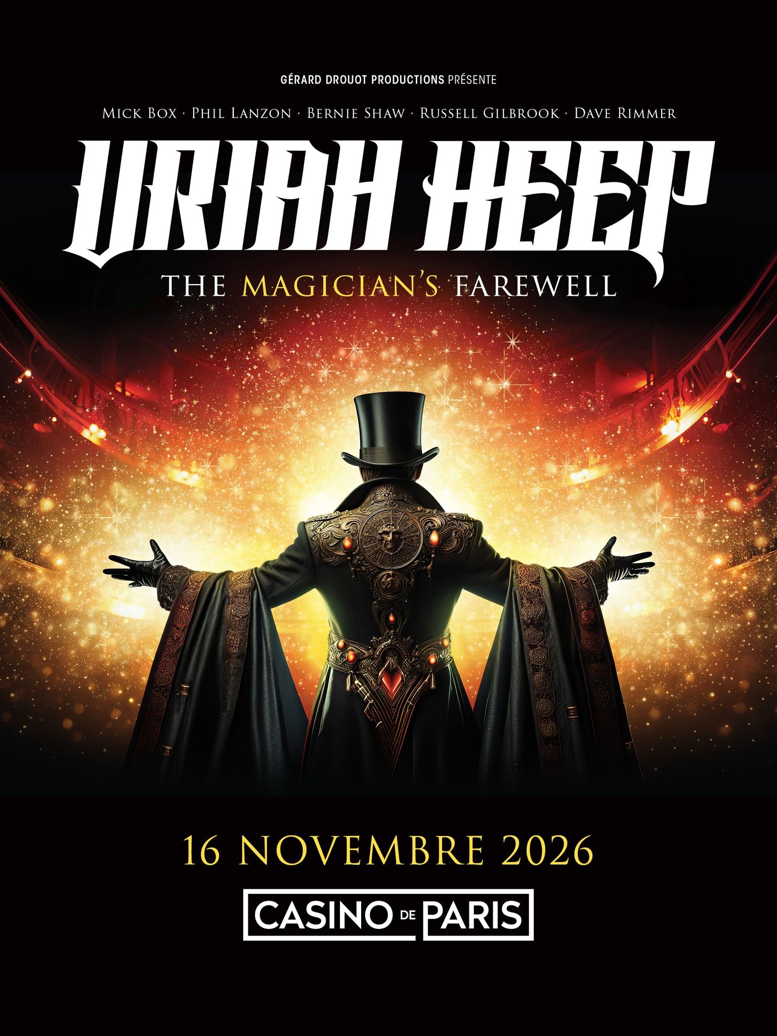 Toutes les belles histoires ont une fin... Fort de ses presque 60 ans de carrière, URIAH HEEP, véritable légende du hard rock britannique, est donc paré pour vous embarquer dans sa tournée d'adieux joliment baptisée "Magician’s Farewell Tour" et qui passera par le Casino de Paris le 16 novembre.