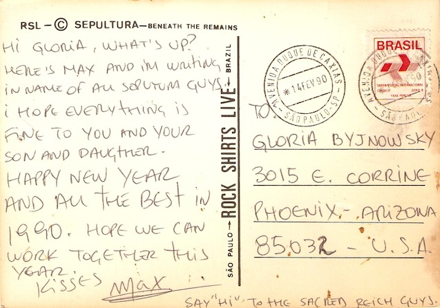 En février (1990), je reçus une carte postale de Max. Une carte de « Beneath The Remains » avec un très gentil message. Je n’en attendais pas autant.