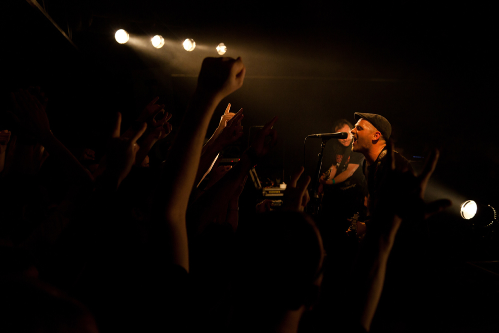 Les TAGADA JONES prennent place dans l'ombre, et ça y est, c'est parti ! Ils commencent leur set avec « De l'Amour et du Sang », et un public déjà à fond dès le premier morceau. Ils enchaînent : « Instinct Sauvage », « Le Chaos ». Un petit mot de Niko, le chanteur, et suivent « Yec'hed Mad », « Pavillon Noir »... sans pratiquement laisser de répit à un public qui est toujours autant excité, si ce n'est plus, alternant pogo et slam sans aucune interruption et cela pendant toute la durée du show. avec « Descente aux Enfers », « Vendetta », « Dissident » entre autres, avant de terminer sur « Karim et Juliette », sorte d'hommage à l'une de leurs inspirations principales : les BERURIERS NOIRS.