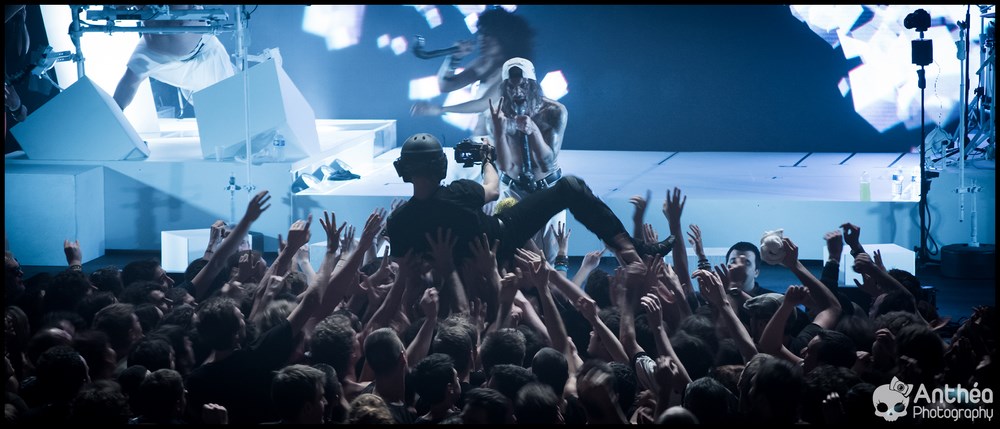 On travaillait chacun de notre côté. Frah avait son ordinateur, j’avais le mien. On bossait aussi l’un pour l’autre et au final ça a donné ce DVD. Logiquement il devait regrouper le concert à Bercy avec un bonus sur la tournée qui devait durer 25 minutes à la base. Je me suis dit que cela ne ferait jamais 25 minutes et encore je trouve que je n’en ai pas mis assez ! Je crois que le documentaire dure déjà 1h20. Je leur ai montré le film terminé et on s’est dit qu’il ne fallait pas le mettre en bonus mais plutôt en introduction de l’univers de SHAKA PONK, pour voir ensuite ce que ça donne en live. Et du coup, c’est devenu aussi un support pour présenter le groupe.