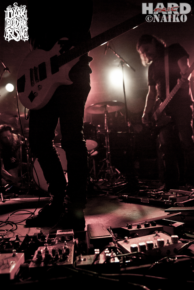 Le groupe suivant à l’affiche a connu depuis lors son « quart d’heure warholien » grâce à une reprise de « Black Sabbath », chantée par Beth Gibbons de PORTISHEAD (intitulée « Black Sabbeth »…). Ca démontre que les mecs (dont deux frangins) ont un peu de relations, ça sert toujours. Pour le reste, trio instrumental, GONGA serait une sorte de KARMA TO BURN britannique et intello-bobo, aux morceaux constellé de pains (manque de précision de l’auriculaire gauche du guitariste, clairement) et beaucoup trop froid. Plutôt moyennement emballé, à l’exception d’un morceau d’inspiration floydienne, tendance climax de « Careful with that axe Eugene ».