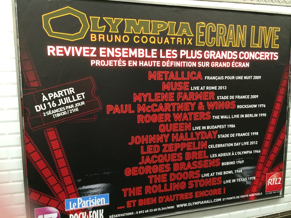 Et puis, en fouinant un peu sur les liens fournis par les applications, nous voici sur la page "Olympia Hall" et là... on comprend mieux. Un mois de juillet consacré à des projections de concerts filmés. Les apps ou les responsables de la saisie des informations n'auront pas fait la différence entre un concert et une projection.