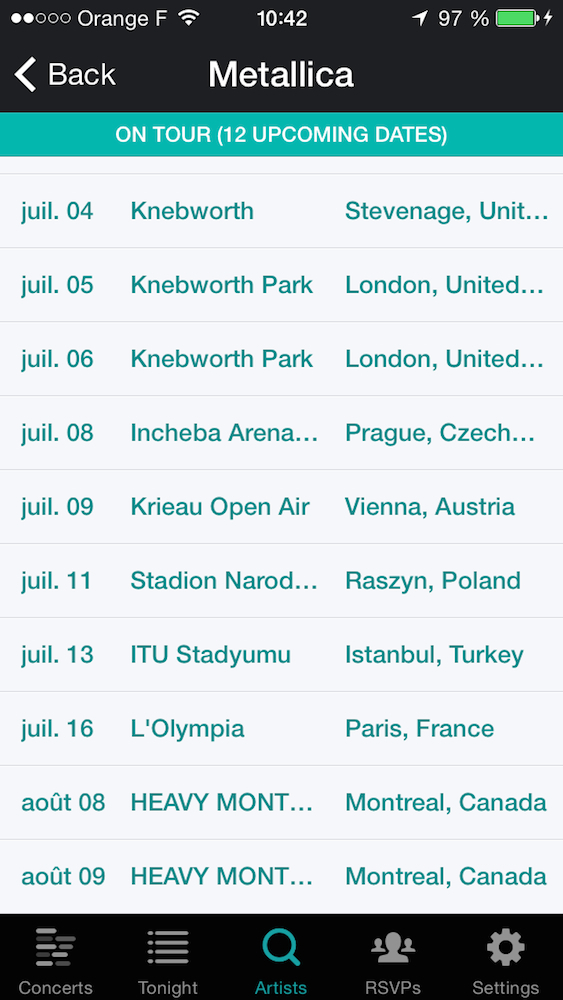 Il y a quelques jours, certains utilisateurs d'applications smartphones ont eu un choc. En quelques secondes, une app comme Bandsintown (mais c'est arrivé sur Eventful aussi) annonçait des dates de METALLICA, Paul McCartney et des ROLLING STONES en concert à l'Olympia, à la fin du mois de juillet.
