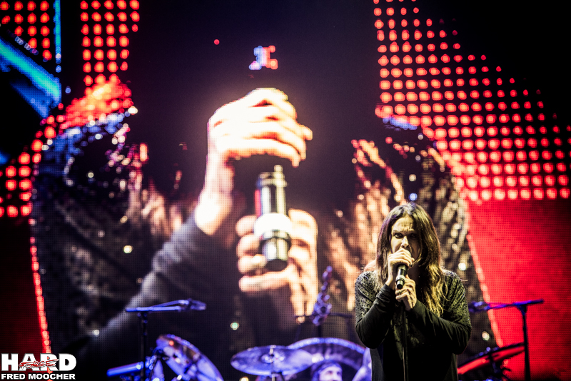 Mais trêve de balivernes, voilà déjà les sirènes qui annoncent « War Pigs », la descente de toms liminaire de Tommy, les premiers power chords de Tony le survivant, les attaques initiales de Geezer… et – ô miracle – Ozzy semble relativement en voix. Son mythique « Generals gathered in their masses… » trouve en écho un «… just like witches at black masses! » surgi de quelques dizaines de milliers de poitrines gonflées à bloc pour la guerre, la messe noire. Et, mes cochons, c’est quand même sacrément bon ! Oubliées, pour l’instant, les vidéos pathétiques qui circulent sur la toile, tournées à l’O2 de Londres ou ailleurs, où Osbourne s’insulte lui-même, humilie ses camarades de jeu, outrage son public. Les vers succèdent aux vers, les couplets s’enchaînent, chantés quasi-juste ! Oh Lord yeah !