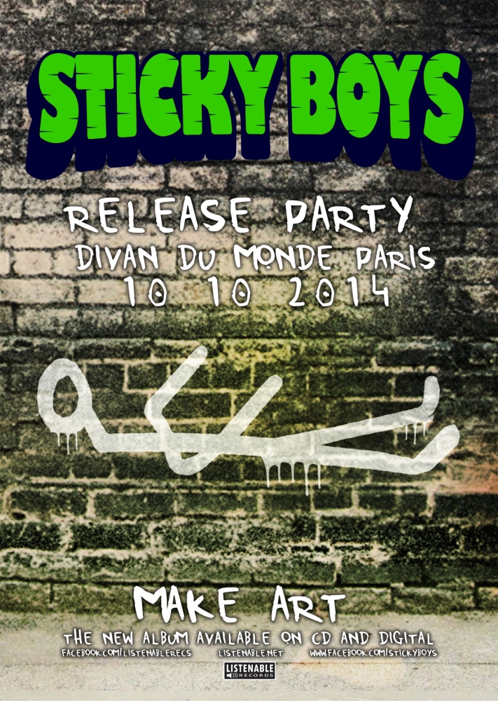 "Make Art" est le reflet de ce qu'ont voulu les STICKY BOYS et de ce qu'ils vivent au quotidien. 11 nouvelles chansons hard rock 'n roll speed punk parmi lesquelles "Mary Christmas" que nous vous proposons d'écouter aujourd'hui en exclusivité avant le prochains rendez-vous fixé par le groupe le 10 octobre 2014 pour une release party au Divan du Monde (Paris), afin de découvrir en leur compagnie ce nouvel album.
