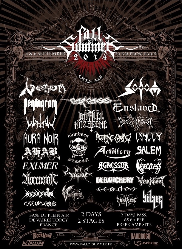 Ces groupes s'ajoutent à VENOM / PENTAGRAM / SODOM / WATAIN / IMPALED NAZARENE / ENSLAVED / BORKNAGAR / EXUMER / AHAB / AURA NOIR / ROTTING CHRIST / BÖMBERS / CANCER / AGRESSOR / ASCENSION / DEN SAAKALDTE / ARTILLERY / VAMPIRE / DEBAUCHERY / BÖLZER / CODE / VORKREIST / CRUXIFICTION !