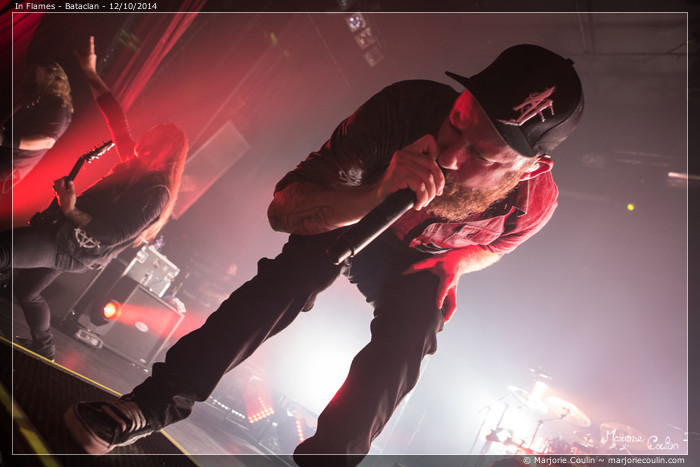 Toujours est-il que les patrons de la soirée se font attendre et c'est après un rapide changement de plateau qu'IN FLAMES débarque enfin sur scène. Les cinq comparses sont visiblement très en forme et une ambiance électrique se met rapidement en place. Anders Fridén se révèle en effet être non seulement en bonne forme mais également d'humeur taquine. Se pliant littéralement sur son micro comme à son habitude, son timbre de voix si particulier résonne dans tout le Bataclan avec une justesse appréciable.
