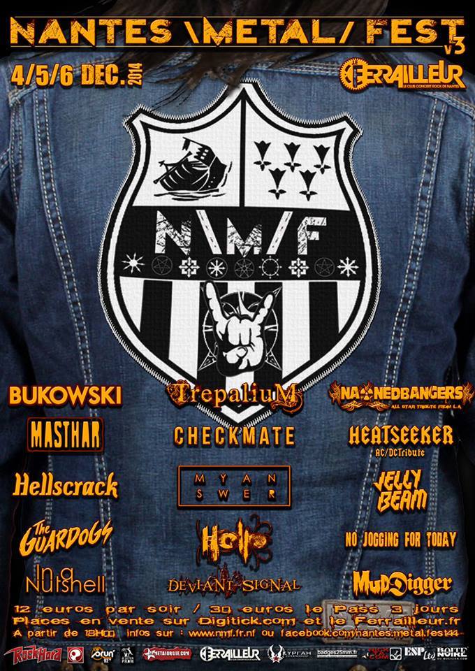 Retrouvez les meilleurs groupes de la région Ouest, mais aussi des pointures nationales telles que BUKOWSKI, TREPALIUM, MASTHAR, CHECKMATE, NAONEDBANGERS ou encore JELLY BEAM !! Le Nantes Metal Fest vous donne rendez-vous les 4-5-6 décembre au Férrailleur.